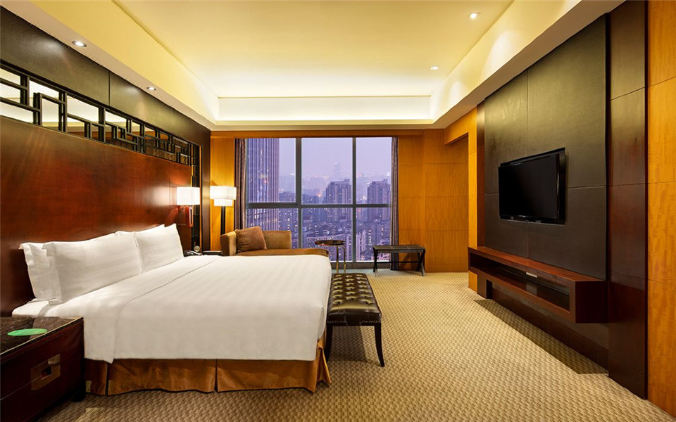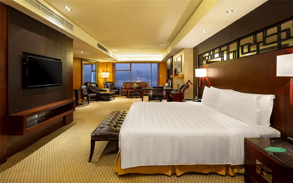 This 40-story Chongqing hotel houses a great variety of accommodations ranging from deluxe rooms to suites, all equipped with free broadband Internet access.